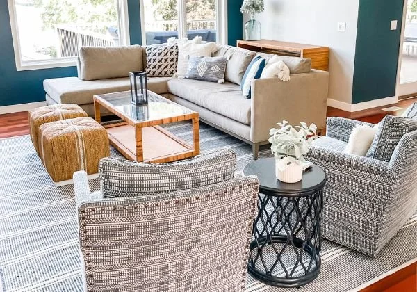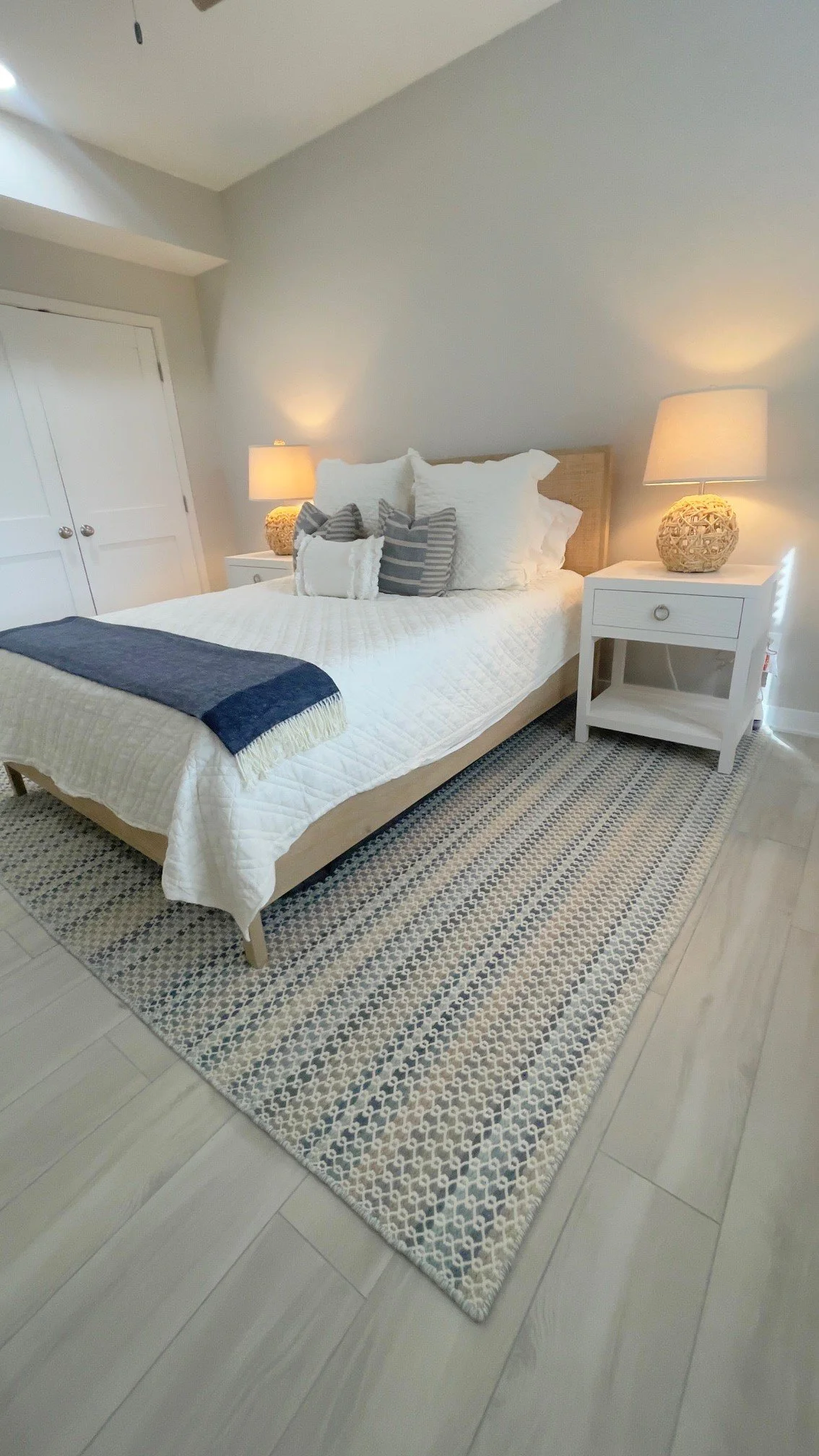 The style leans into textured neutrals, soft blues, and organic layers that bring calm, flow, and a sense of elevated ease to every room. From thoughtful space planning to curated furniture and decor, each area was designed to feel airy, comfortable, and beautifully lived in.