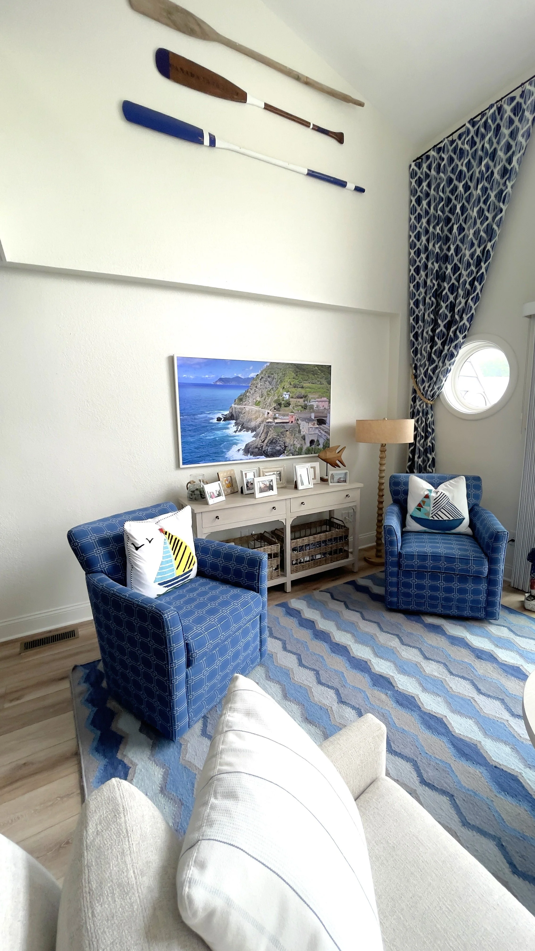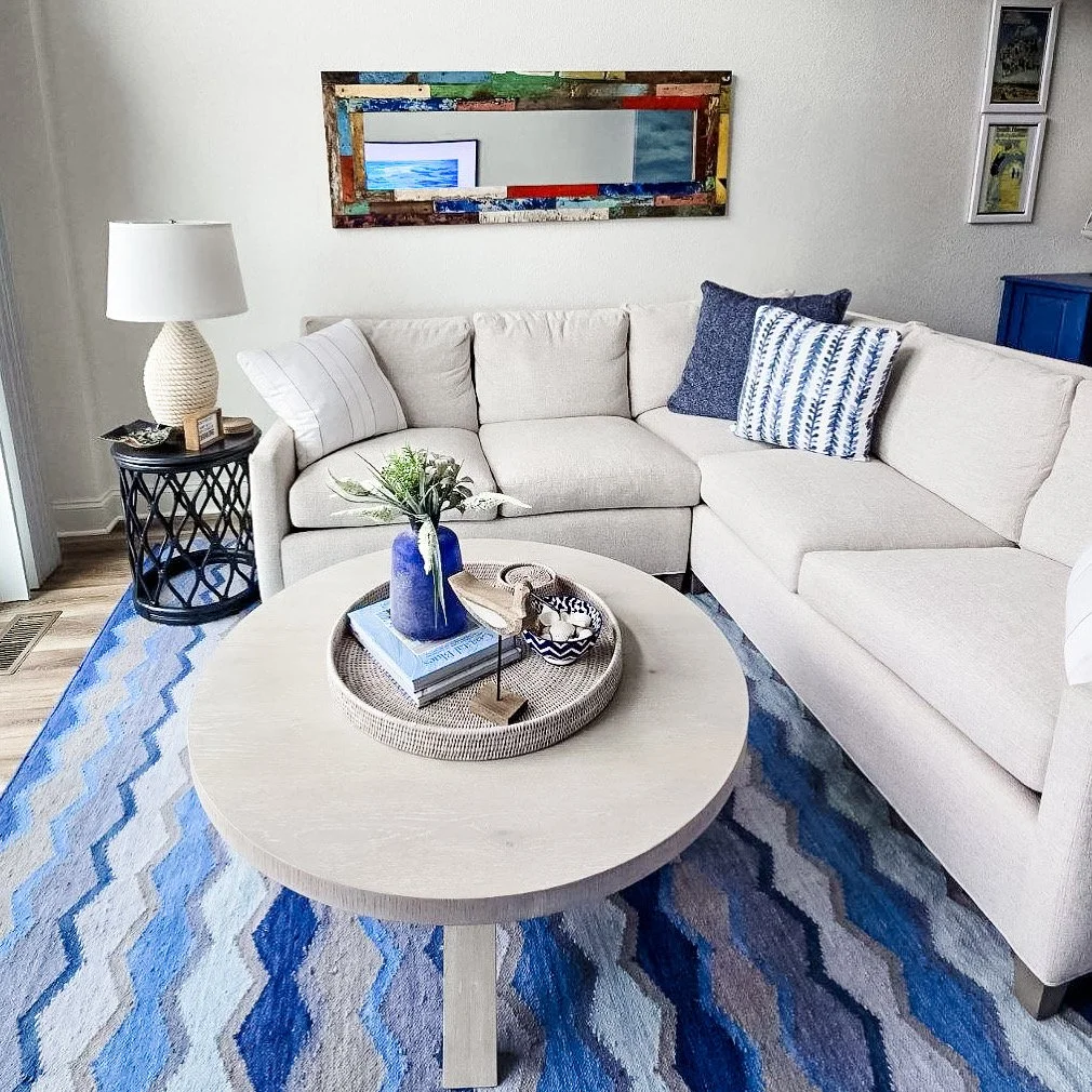 Bright blues, soft neutrals, and fun coastal patterns now fill the space with energy and warmth, while new furnishings and a reworked layout bring comfort and balance to everyday living.