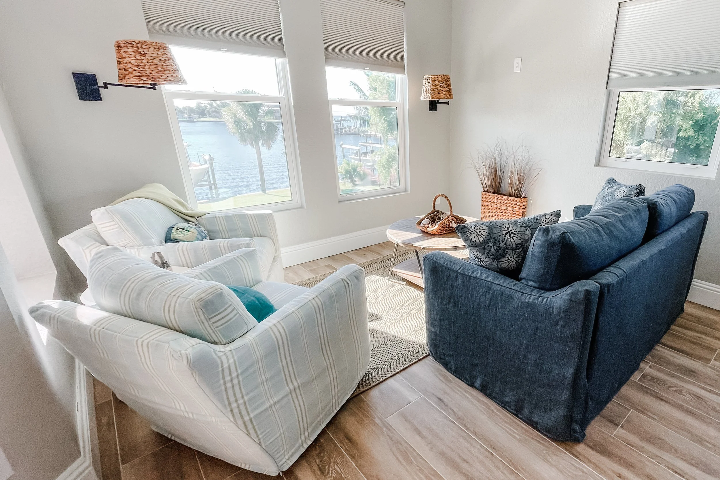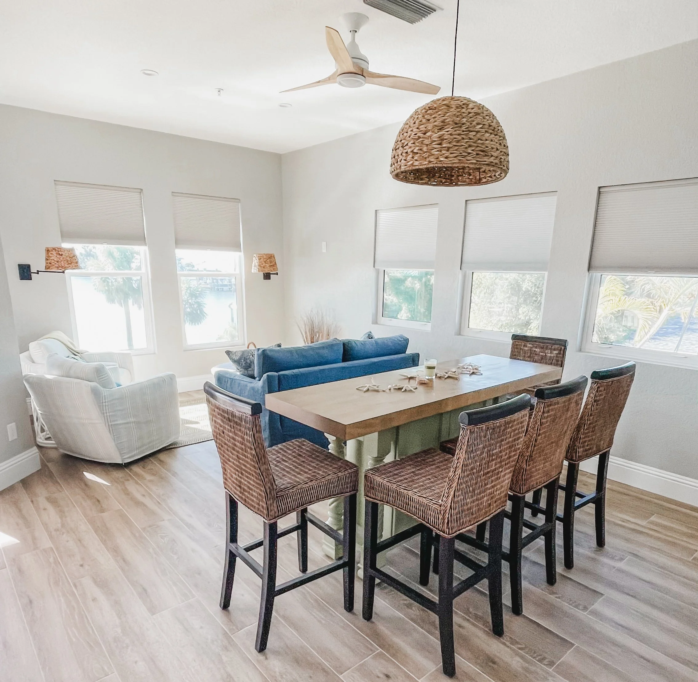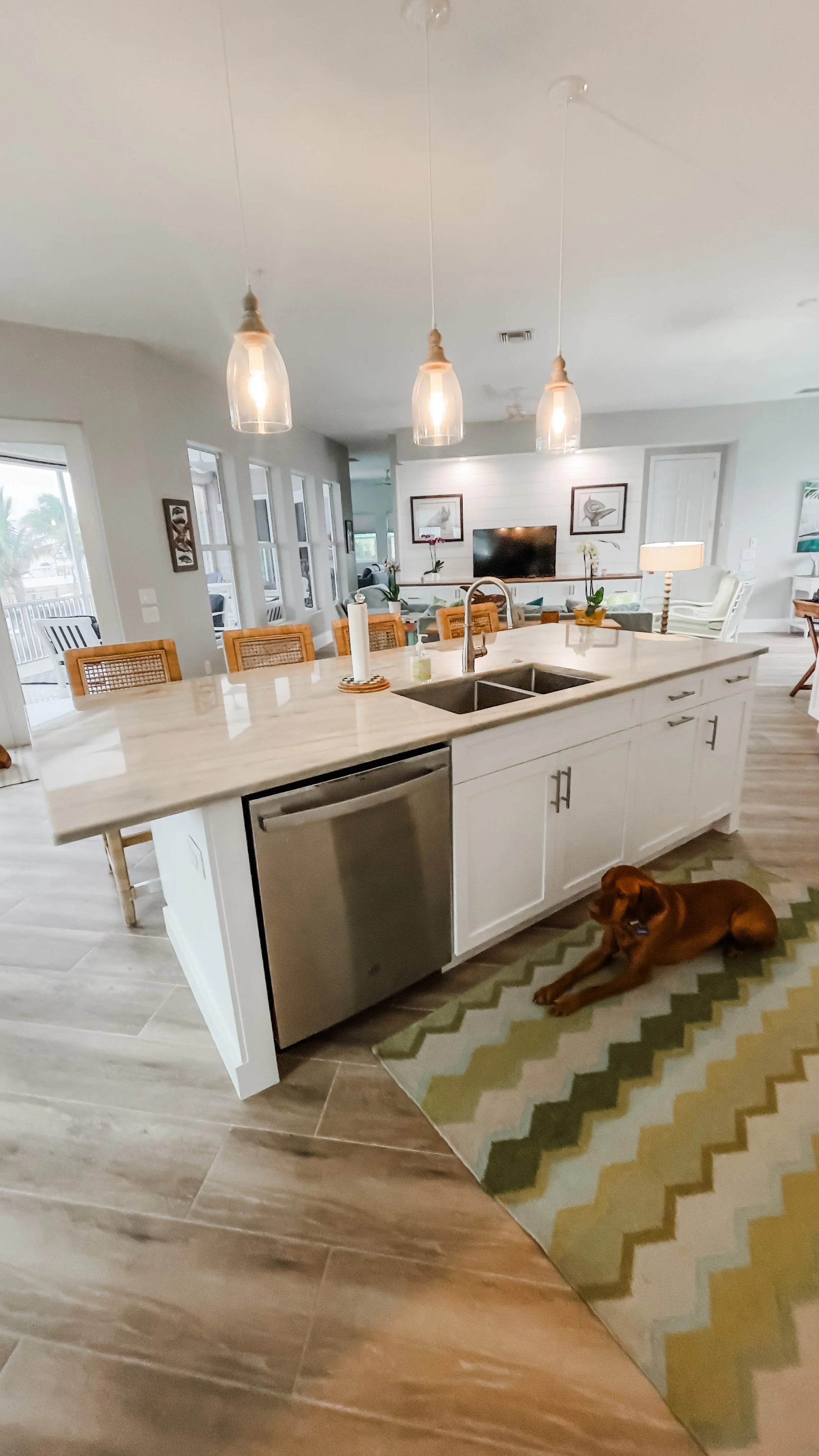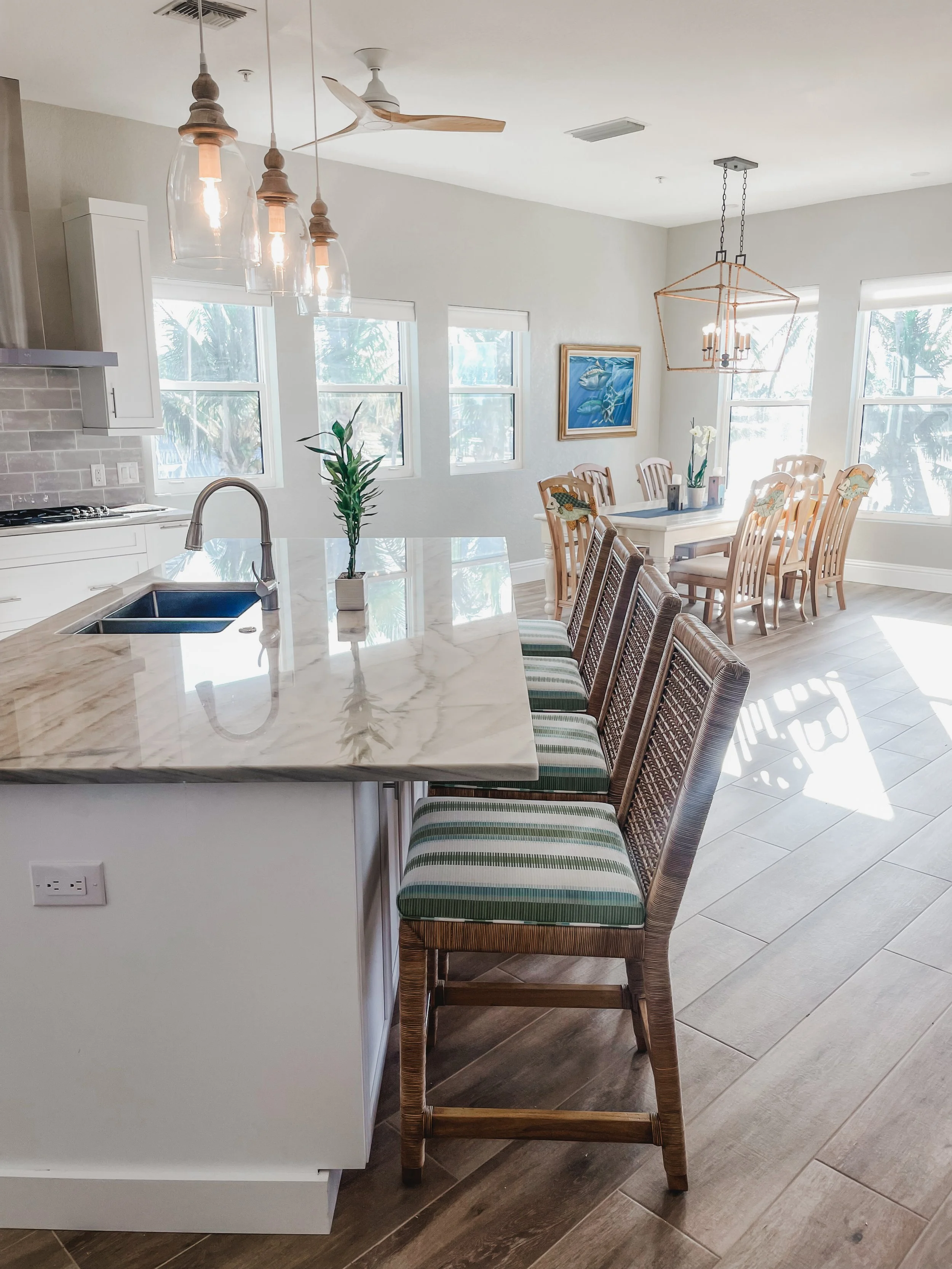 After Hurricane Ian devastated the interior of this Placida, Florida home, I was brought in to rebuild it—quickly, thoughtfully, and with a fresh, fashion-forward coastal style. By reimagining the layout, we transformed the kitchen, living, and dining areas into one open, livable space that feels intentional and connected. A stylish new wet bar and an inviting sitting nook add function and flow, perfect for gathering. Every bathroom and bedroom was fully renovated to feel larger, brighter, and beautifully updated, giving this coastal retreat a renewed sense of life and calm.