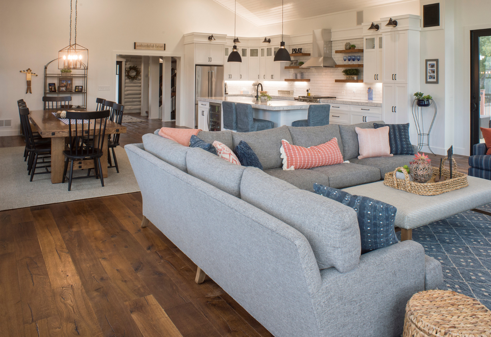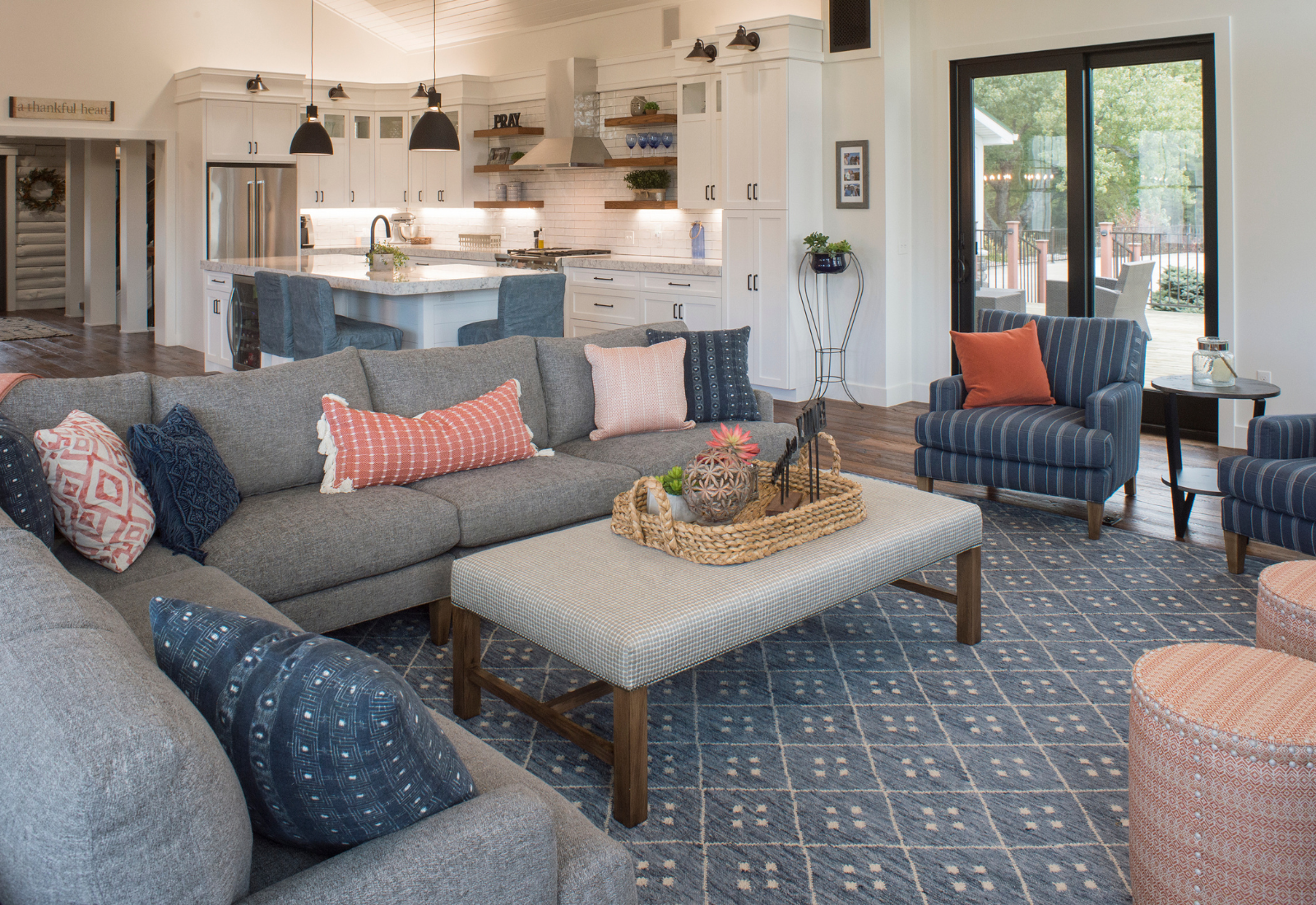 We layered in soft textures, natural materials, and a mix of fun patterns to give the home personality and movement. The result is a modern farmhouse meets coastal bohemian vibe—cozy, elevated, and full of relaxed charm. A unique family home designed for living, gathering, and hosting with ease.